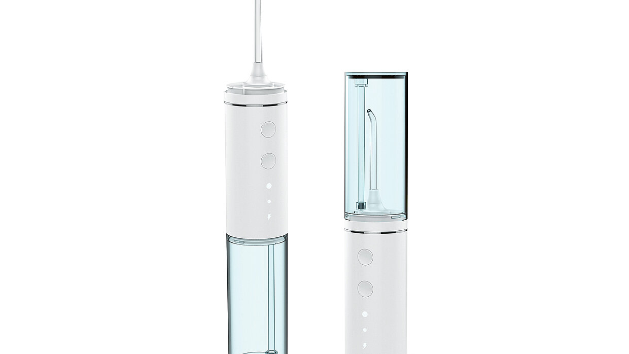 Featuring a sliding cover with patented opening mechanism, the water tank of Clean Moving is both convenient to fill and hygienic to close. Despite the compact design, more than 160 ml of water can fit into the tank. The oral irrigator is waterproof according to IPX standard. The interface is equipped with two buttons, one to switch on or off and one to adjust water pressure, making it easy for users to operate the device.