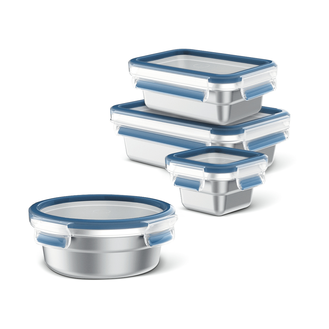 These food-storage containers made from robust stainless steel are highly versatile. They are frost-proof and thus suitable for freezing foods. The stainless-steel containers can also be used as cookware in the oven. A plastic, leak-proof clip-on lid prevents any leakages in the fridge, cupboard or when on the go. The containers are available in seven different sizes and are dishwasher-safe.