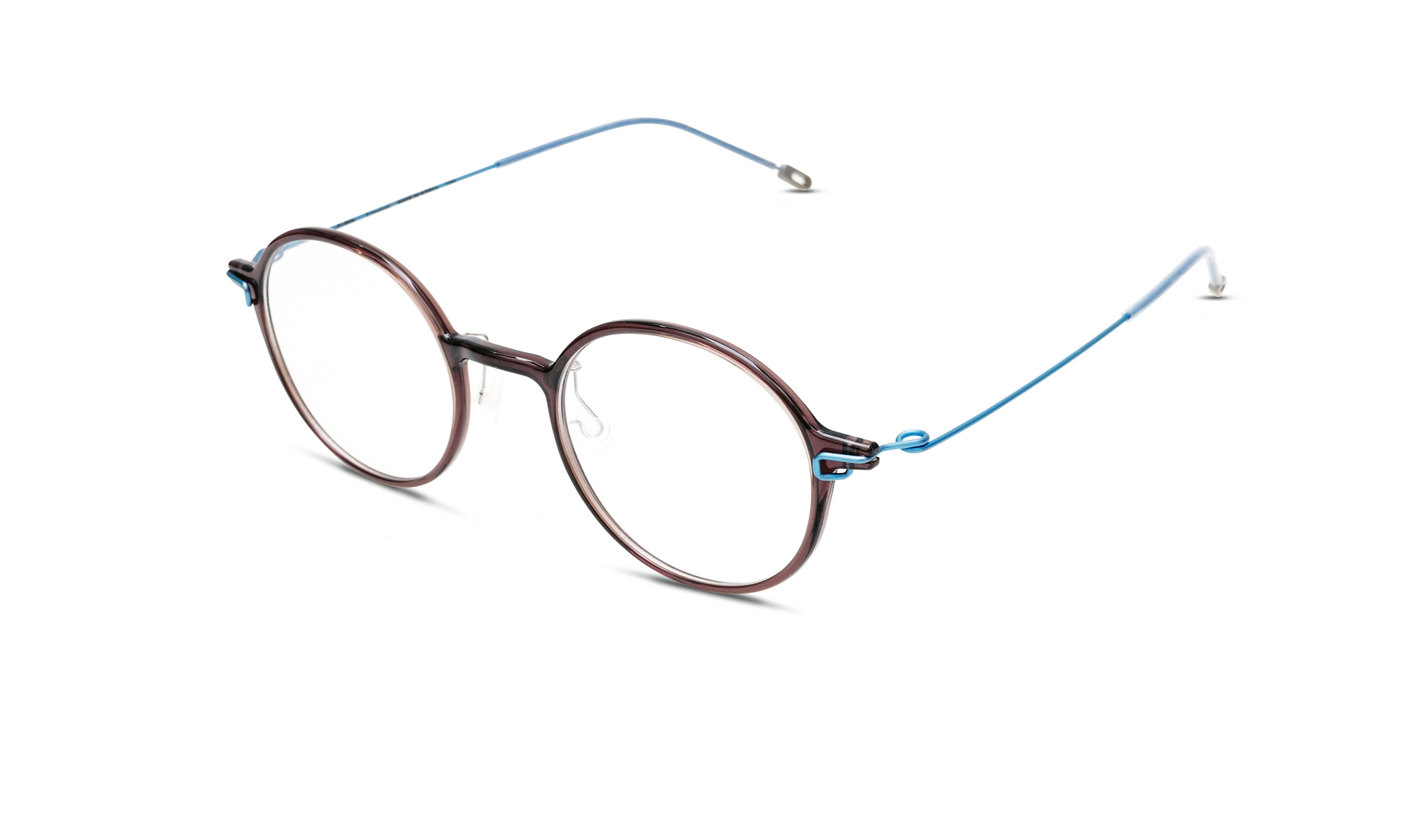 The main quality of the Clip-in glasses, which are super-lightweight with a total of only six grams, is simplicity. Through a connecting principle inspired by the design of a paper clip, the temples can be securely attached to the frame in just a few simple steps. Accordingly, there are no screws, straps or other connecting elements that could come loose and get lost when the glasses are worn. The frame and coloured temples are made of skin-friendly materials such as Ultem and titanium wire.