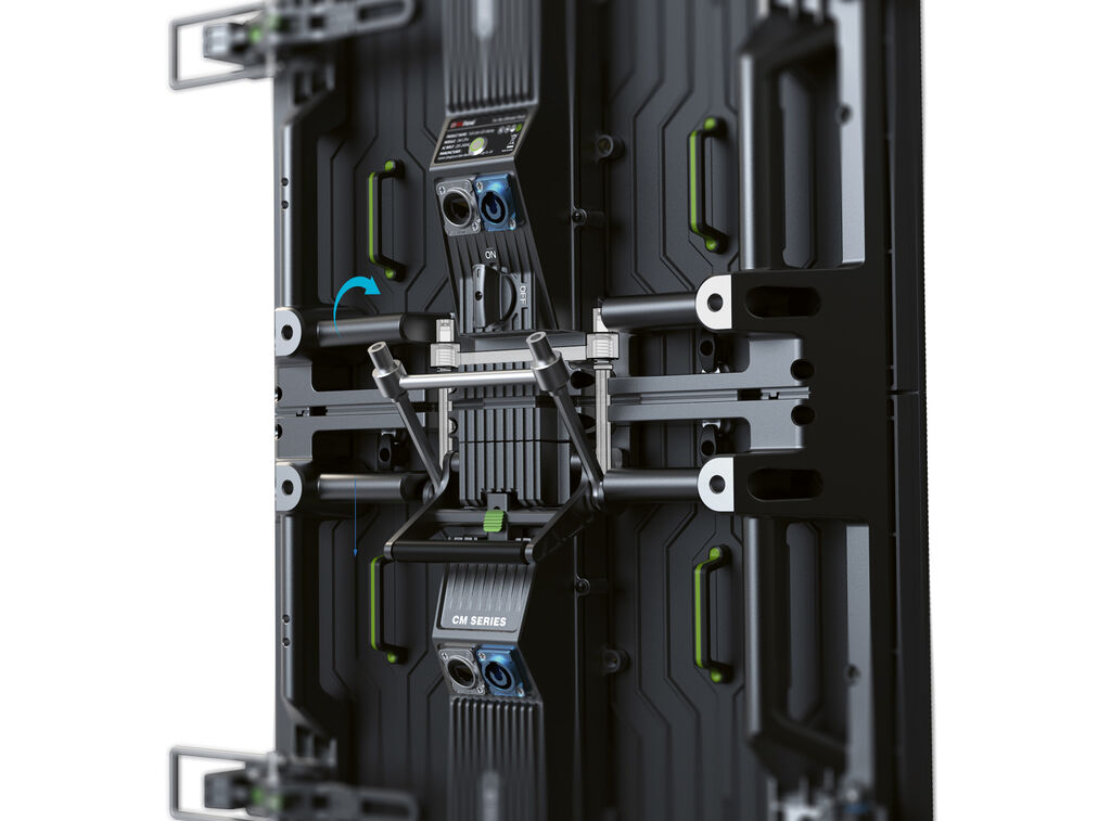 The CM Ultra LED screen modules are designed for high-end applications such as theatre, concerts and sporting events. Their lightweight frame is made of a double-layer magnesium-aluminium alloy and features clean geometric lines. A split power supply enhances energy efficiency. Wireless transmission simplifies installation, while the 45-degree angled frame and flexible locking mechanisms allow for the creation of flat, rectangular or curved configurations.