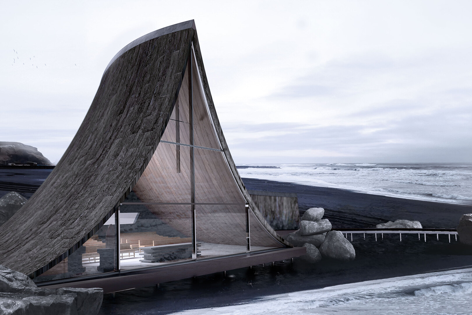 The bionic whale concept of this chapel aims to respect and integrate with the environment. It is a temporary structure that offers a space to admire Iceland’s most famous black sand beach. The building is tightly integrated into the site, and adjustable nodes can adapt to the geological conditions of the beach regardless of the form and construction of the whale. The structure can even be temporarily moved in response to Iceland’s extreme weather. This house is like a swimming whale, with the floor height changing depending on the tide of the season. The black wood echoes Iceland’s traditional way of life. While watching the scenery, the nobility of life can be felt in the chapel’s narrow space. This project uses natural and environmentally friendly materials to create a tourist destination that advocates for whale and natural environment protection. Serving as a strong adaptive solution, this project’s profound long-term significance will not be limited by its scale.