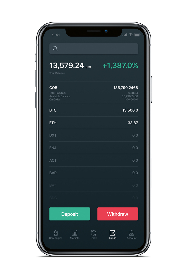 Cobinhood Crypto Exchange allows traders to buy or sell cryptocurrencies without fees. The platform also provides a highly secure personal wallet for storing Bitcoin, Ethereum and other coins. The interface is easy to navigate and available in many different languages. A central part of the dashboard is the price chart, which displays prices and market data for the selected currency in real time. It can be viewed in a variety of graphical styles, which users can set depending on their preferences. Occasional competitions and the distribution of bonus and free coins promise exciting trading experiences.