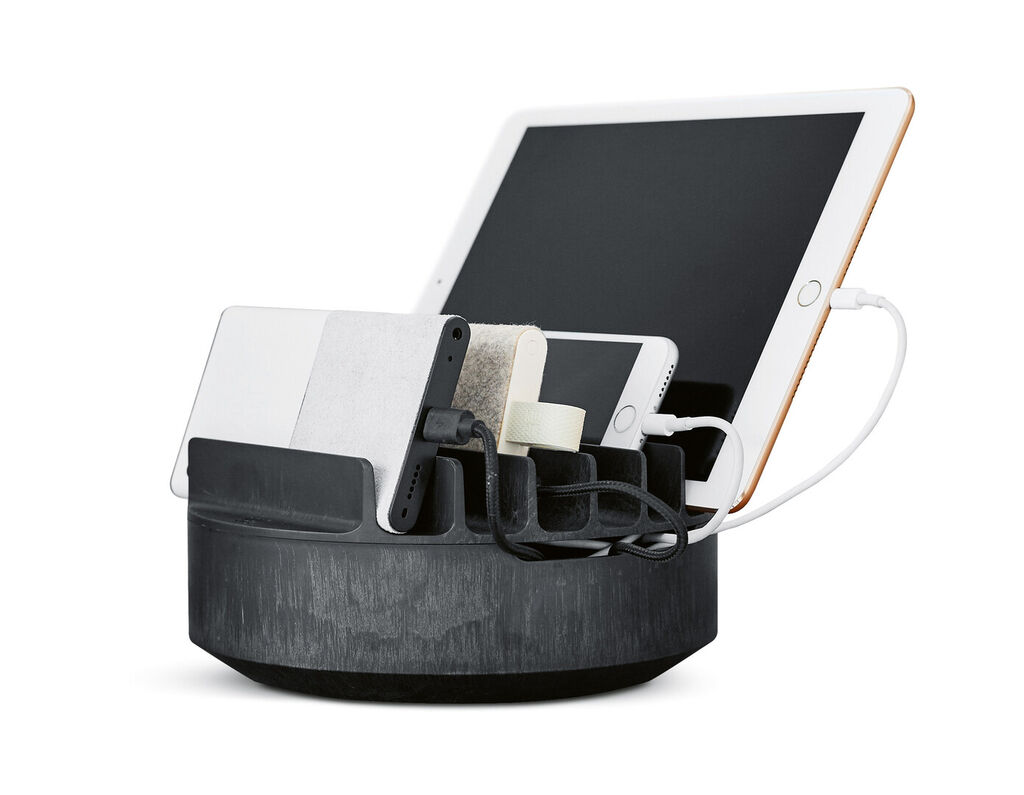 With the appearance of an artisanal object, the design of the Colony multi-device charging tray, that helps to keep the workplace tidy, draws attention.