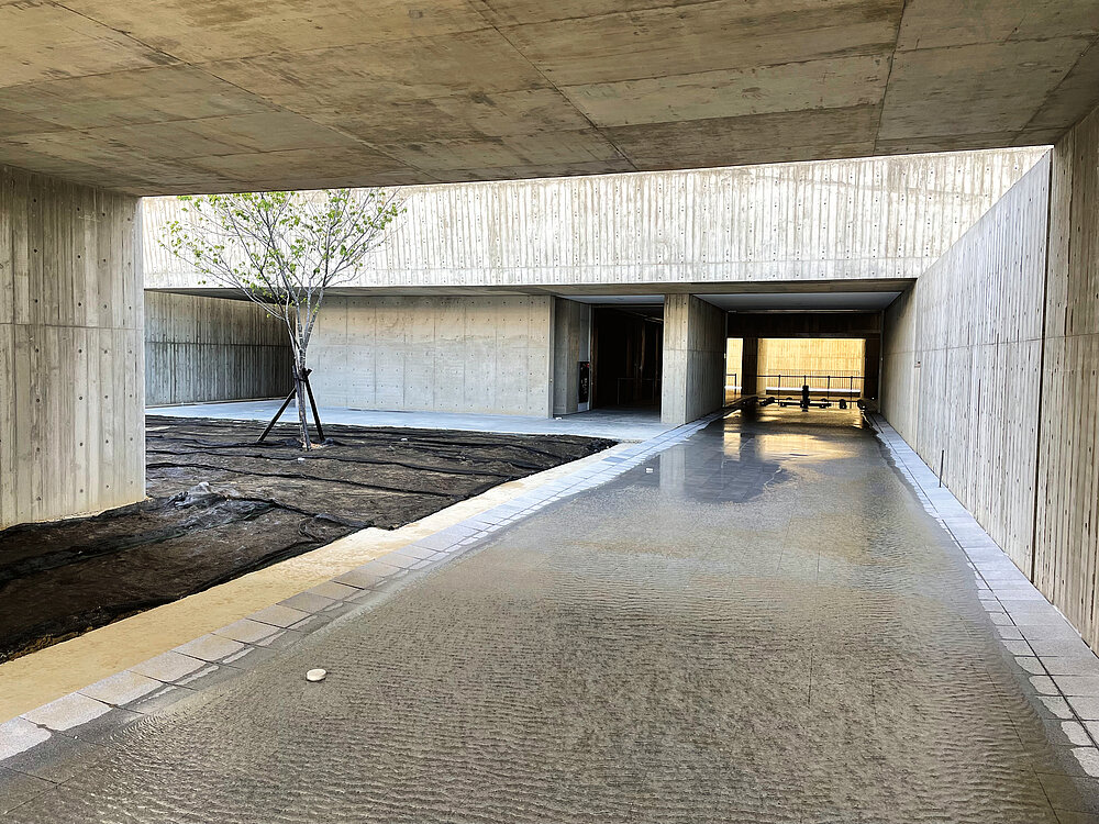 This columbarium is composed of four independent yet precisely coordinated zones. The structure stands out due to its sloping exterior walls and terraced floors, evoking an association with the petals of a flower. In addition, this construction method provides natural lighting and ventilation. The design is deliberately simple and unadorned. Instead of noble building materials, simple elements and colours are used, lending the columbarium a natural radiance.