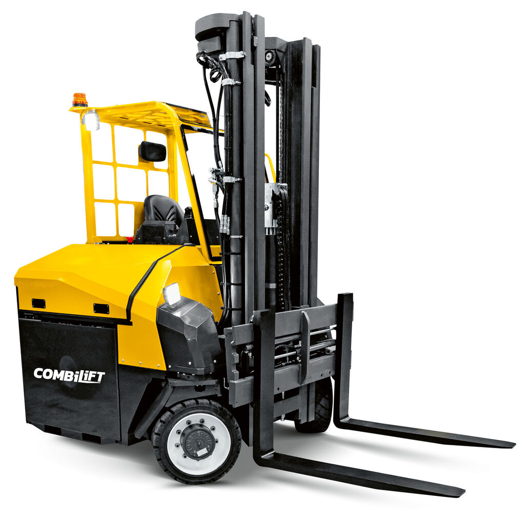 The Combi-CBE 4000kg is a multidirectional counterbalanced truck with all-wheel and electric drive and a load capacity of four tons. This allows it to be used both for the frontal transport of pallets and for the lateral transport of long loads. Furthermore, it has independently controlled front and rear wheels with an innovative one hundred per cent traction control. By entering the wheelbase parameters, the traction commands are calculated by the control system.