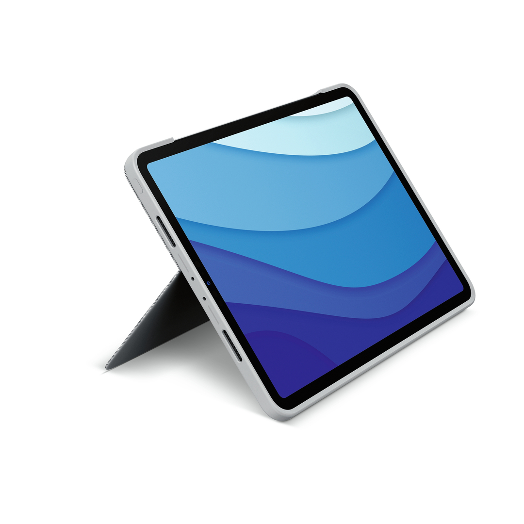 This iPad keyboard case with trackpad modes for different tasks is covered in fabric. As an add-on for iPad Pro and iPad Air, it provides protection against falls from heights of up to three metres and a detachable, very flat keyboard. The kickstand can be adjusted to any angle, depending on the task, offering flexible use. The backlit keys of the detachable keyboard feature 16 brightness levels that adjust automatically, while the trackpad with gesture control enables effortless but precise clicking.