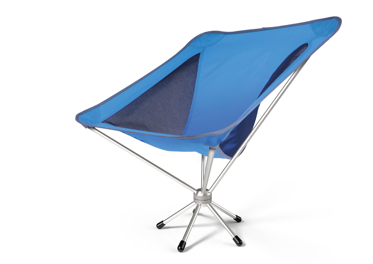 The particular feature of this outdoor swivel chair is that it rotates. Its minimalist design promises high comfort and places special importance on an ecologically sound manufacturing process. The outdoor swivel chair is very light, easy to handle and when folded only takes the space of a bottle of water. Its big seat invites users to rest and relax – whether on a camping tour or a short trip to the countryside.