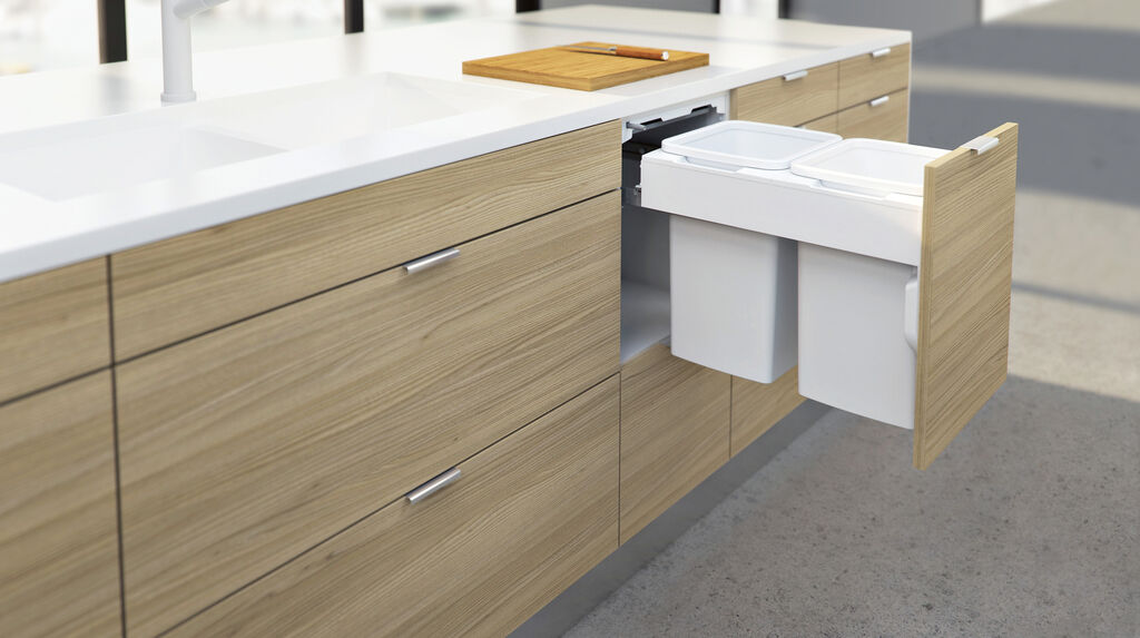 A sophisticated product solution, this kitchen waste bin convinces thanks to its automatic, odour controlling closing mechanism.