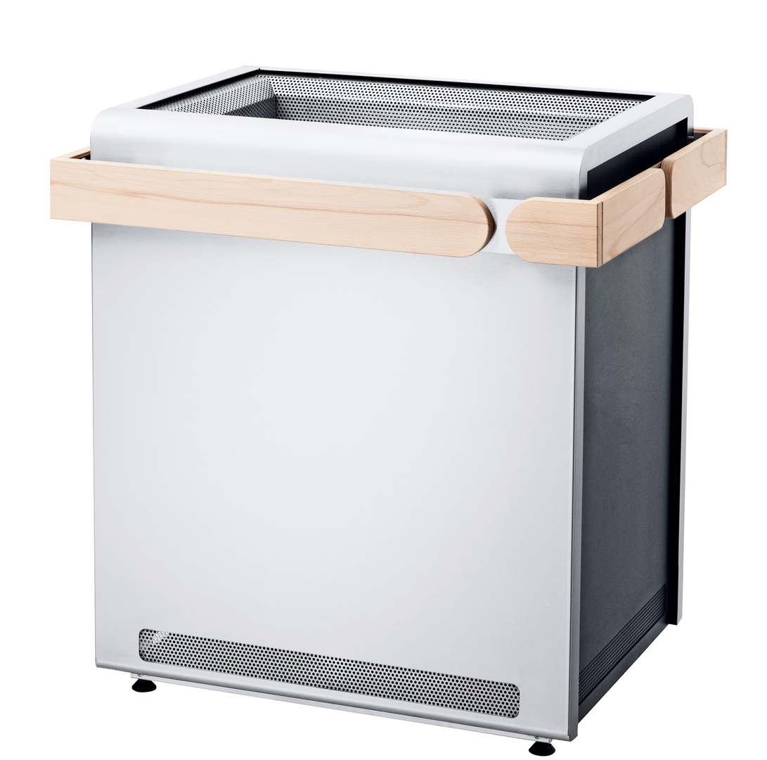 The sauna heater is at the heart of any sauna system. This is why Concept R – “R” stands for rounded edges – can be viewed from four sides, so that the sauna heater can be placed anywhere in the room. Its inner workings are also unusual. The three-casing technology used and the optional wooden railing offer maximum protection against accidental contact and burns. A removable junction box and electronic cover protection to avoid sauna fires complete the technology package.