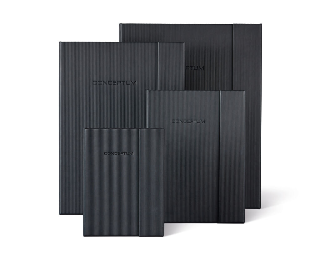 CONCEPTUM with magnetic fasteners are elegant notebooks that feature an appearance reduced to the essential and an unusual Softwave surface. The pen loop inside the cover keeps a pen or pencil ready for use. The notebooks are available in all popular formats, from the practical pocket format A6 to the striking, extra-large A4+ size. Their carefully designed details comprise, for instance, a personal directory that makes it simple to find notes again, perforated note pages to tear out and three filing compartments: quick pocket, archive pocket and card slot.