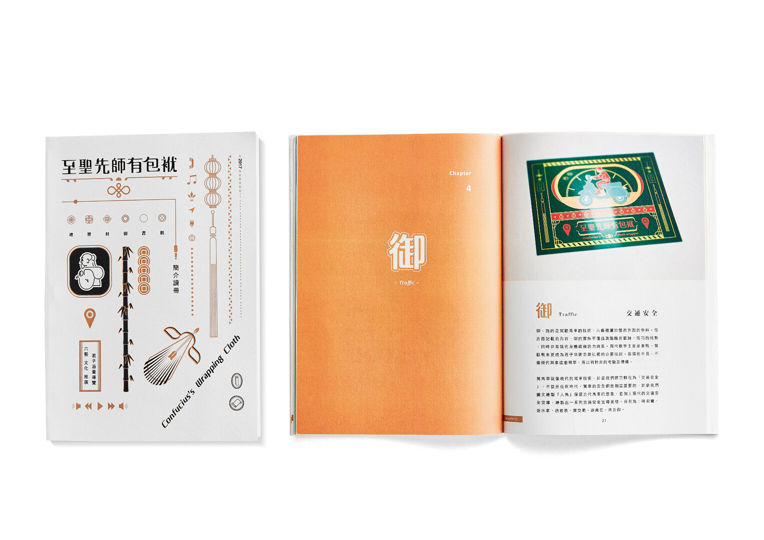In ancient Chinese culture, six disciplines formed the basis of education: writing, mathematics, archery, chariot riding, music and rites. The Six Arts became a part of Confucian philosophy and embody the values of ritual, self-discipline and social etiquette. In order to recall this traditional education and to share its values, the illustrations visualise the Six Arts as modern, colourful scenarios. The stylised motifs serve as emblems for a website, animations and brochures, yet also decorate various items of daily use, for instance a wrapping cloth.