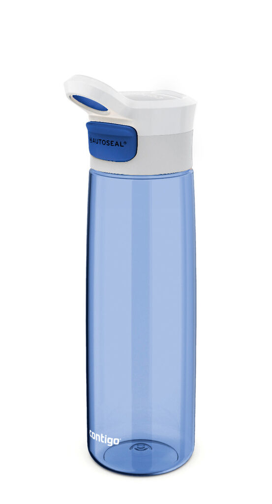 Contigo Grace is a water bottle made of BPA-free, translucent Tritan copolyester. Thanks to its patented Autoseal technology, the bottle is leak-proof. The Autoseal button is pressed for drinking, and the lid automatically re-seals when released. This allows one-handed use of the ergonomic bottle for on-the-go drinking. Additionally, Contigo Grace is impact resistant and dishwasher safe.