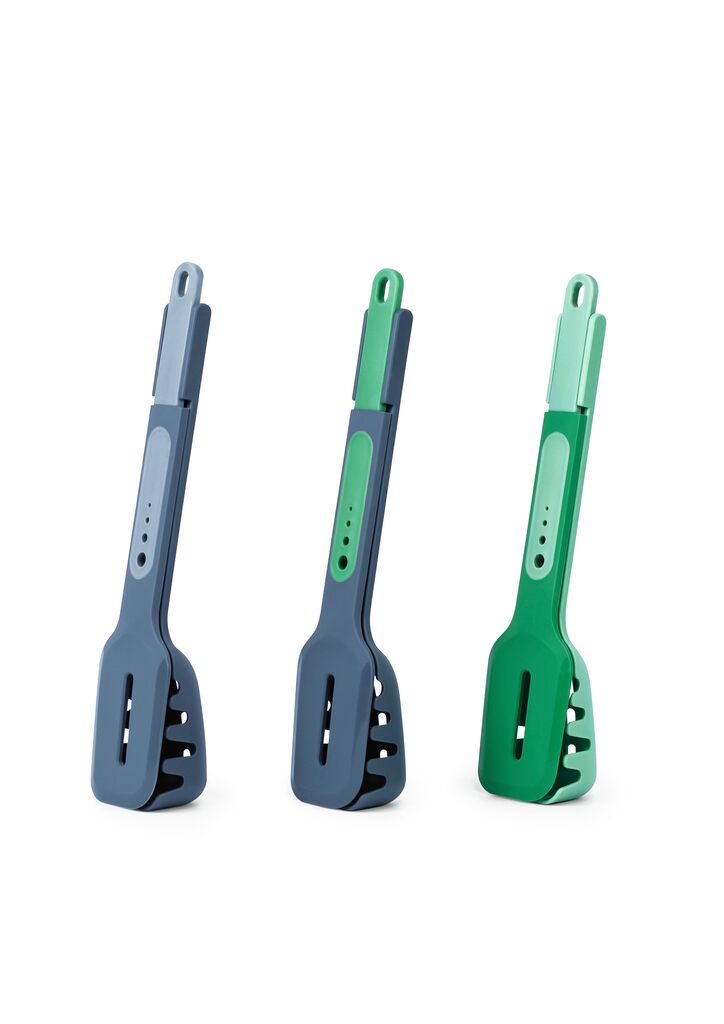 COOKI was developed with the intention of combining multiple kitchen implements into one sustainable product, not least to reduce material consumption. This two-piece kitchen utensil made from coated stainless steel can be used as a fish slice, pasta spoon, serving tongs, etc. Holes integrated into the handle help remove the leaves of coriander and similar herbs from the stem. The kitchen implement is durable and takes up minimal storage space. By reducing the number of kitchen utensils needed, it also saves on the need for recycling.