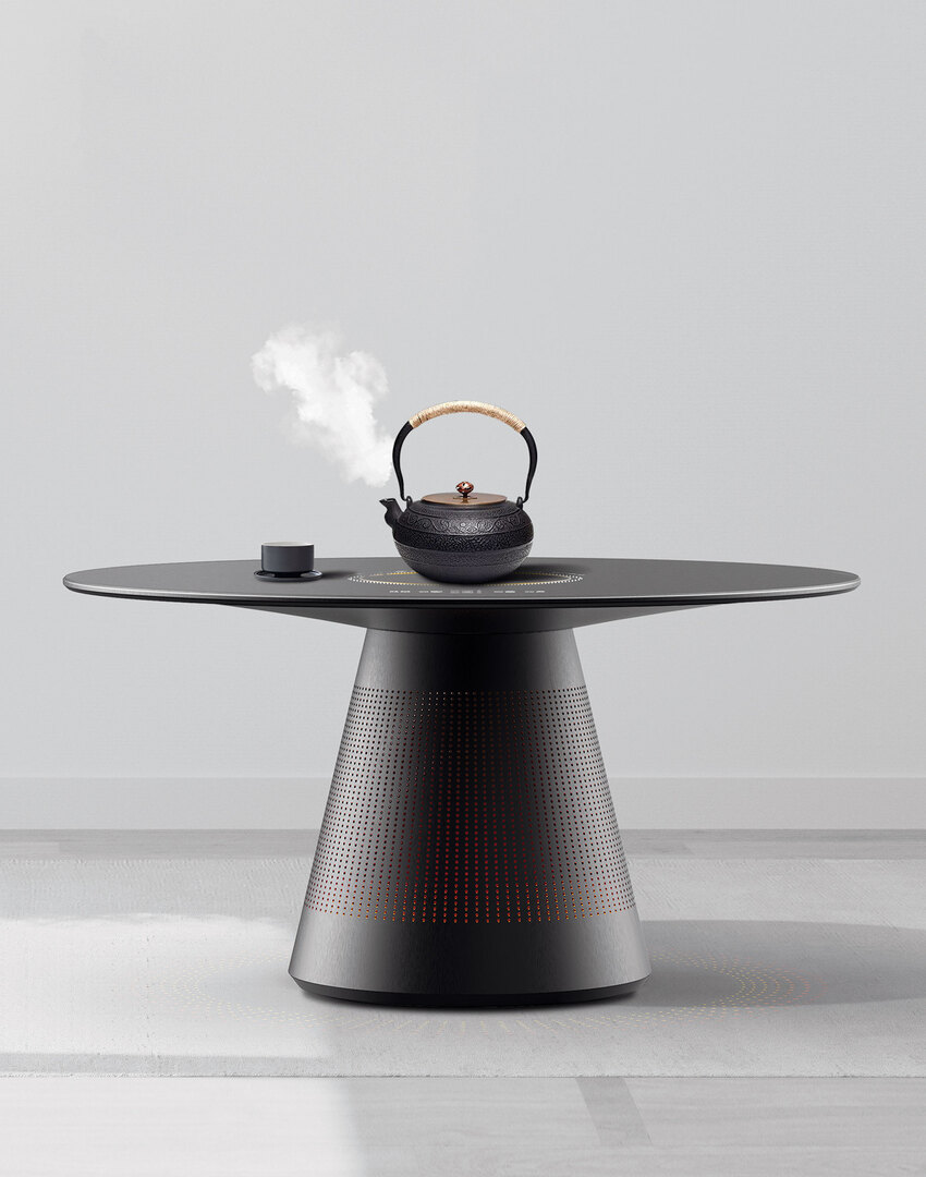 Cooking Tea Around The Stove is a multifunctional environmentally friendly appliance that combines underutilised functions into a single appliance centred around making tea. Converting an open flame cooker into an electric cooker, it serves as an electric heater, electric tea kettle, insulating mat, induction cooker and lighting. This tea stove integrates tradition and culture with intelligence and automation to provide a warm modern family atmosphere that is also safer and more environmentally friendly. Each stove has several cooking modes for a variety of uses and needs such as tea brewing, warming food, heating the space, and lighting. It is the ideal combination of an induction cooker, insulation pad, lamps, and table, and it streamlines less frequently used appliances into a single product and form. Red Dot Award: Design Concept | Concept | Domestic Aid and Home Appliances
