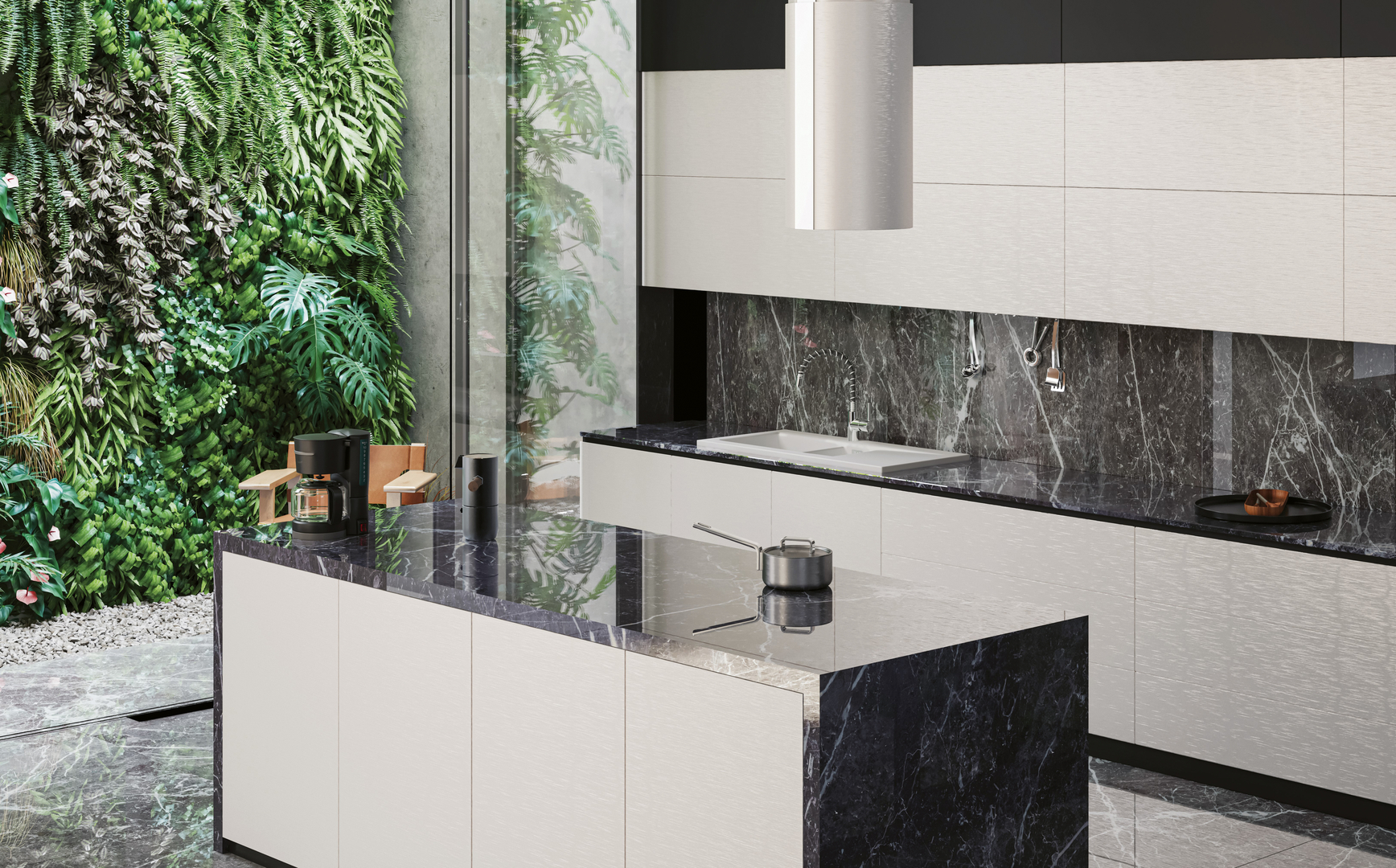 The innovative CookingRAK combines the special characteristics of porcelain surfaces with high-quality, seamless kitchen aesthetics.