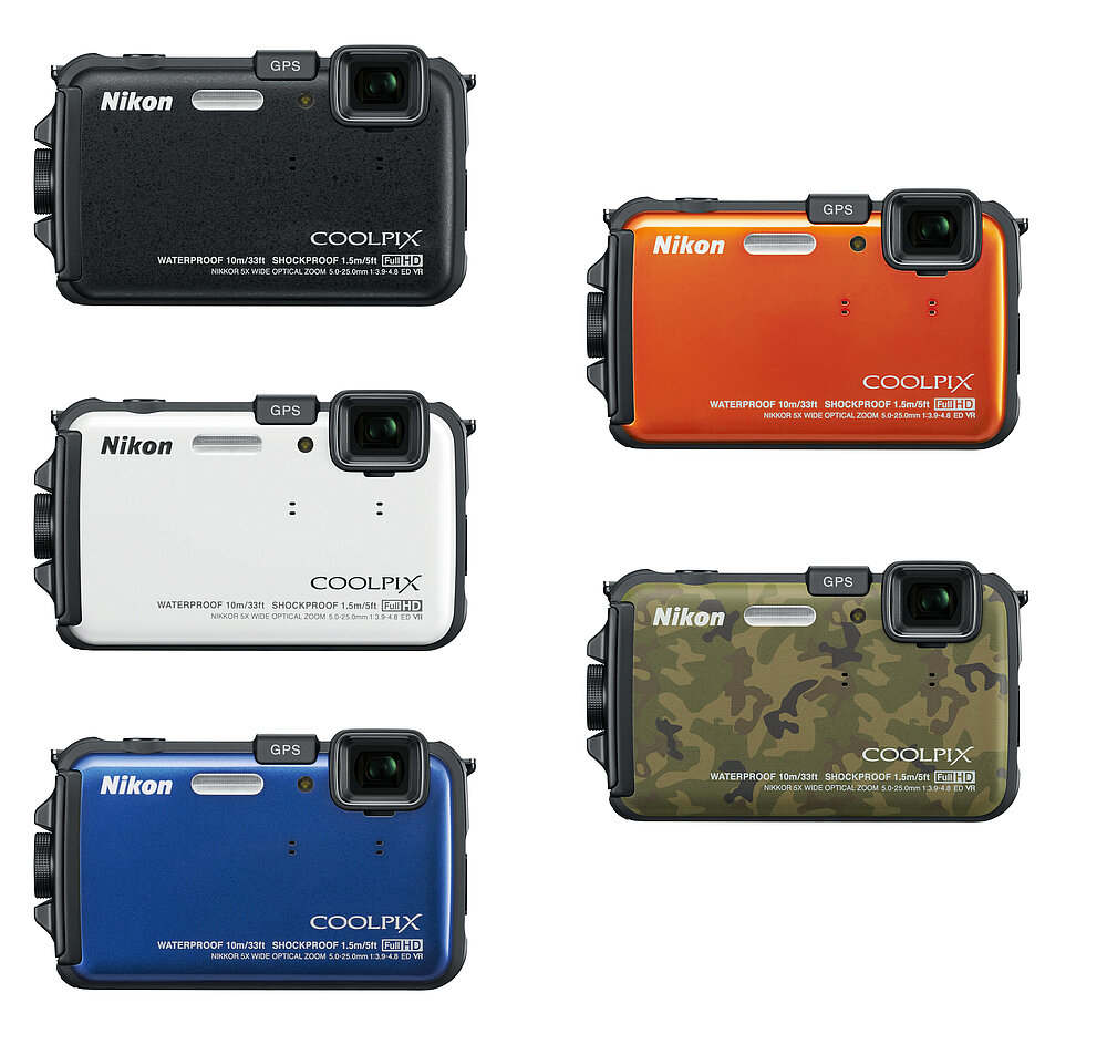 The waterproof, shock- and cold-resistant Coolpix AW100 digital camera is particularly suited to outdoor use. With functions such as GPS support, a digital compass and a world map, pictures can be geo-tagged. A special functional mode allows the user to change settings by simply swinging the camera. In this way, it may also be operated underwater or when the user is wearing gloves. The dial-type battery chamber and memory card slot provide additional stability.