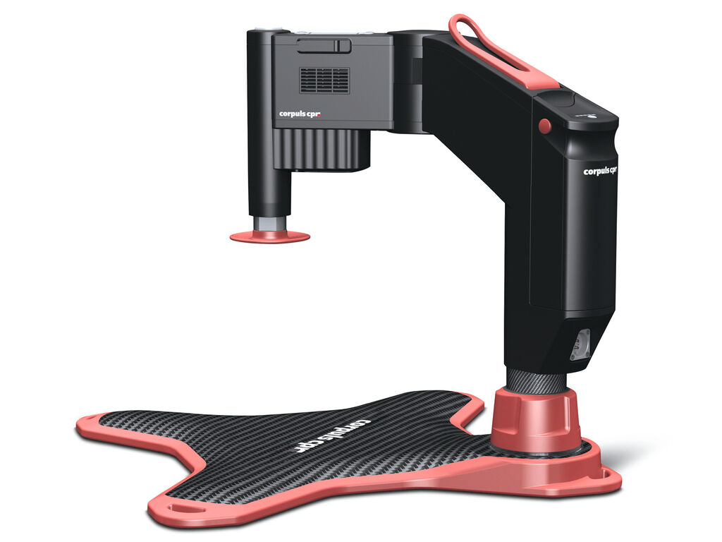 The corpuls cpr chest compression device enables uninterrupted mechanical reanimation. The system consists of a swivelling, rotatable arm with an integrated pressure stamp and different reanimation boards. They are made from a radiolucent material and have been developed especially for varied requirements in emergency medical services, air ambulances and hospitals. Due to the fact that it is only attached on one side, the device offers free access to the patient’s upper body during use.