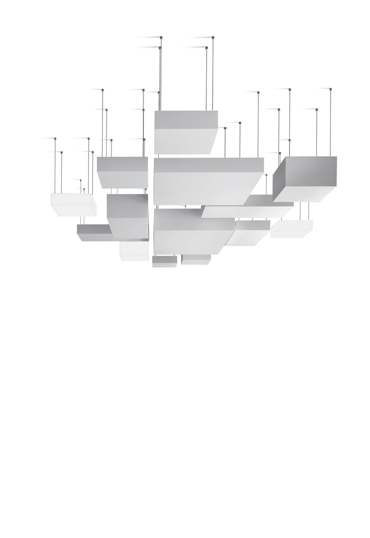 The Corpus ceiling system with its various rectangular and square acoustic elements incorporates an impressively flexible type of ceiling design. The possibilities to create an individual room experience are enormous. Also noteworthy are the very good sound-absorbing properties. With its effective and highly functional design, this system enables enticing new solutions, especially for large rooms.