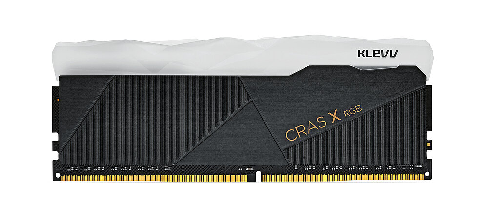 The gaming CRAS X RGB memory module is only 8 mm thick and was manufactured from aluminium in a precise production process. Its shape is inspired by crystals, which is impressively illustrated by the transparent, waved upper side of the modules. When the RGB LEDs light up at the interface ports, this transparent structure emits colourful lighting that seems to flow softly over all the hardware installed in the PC. The modules are compatible with the latest Intel processors and are available as 8 GB and 16 GB versions.