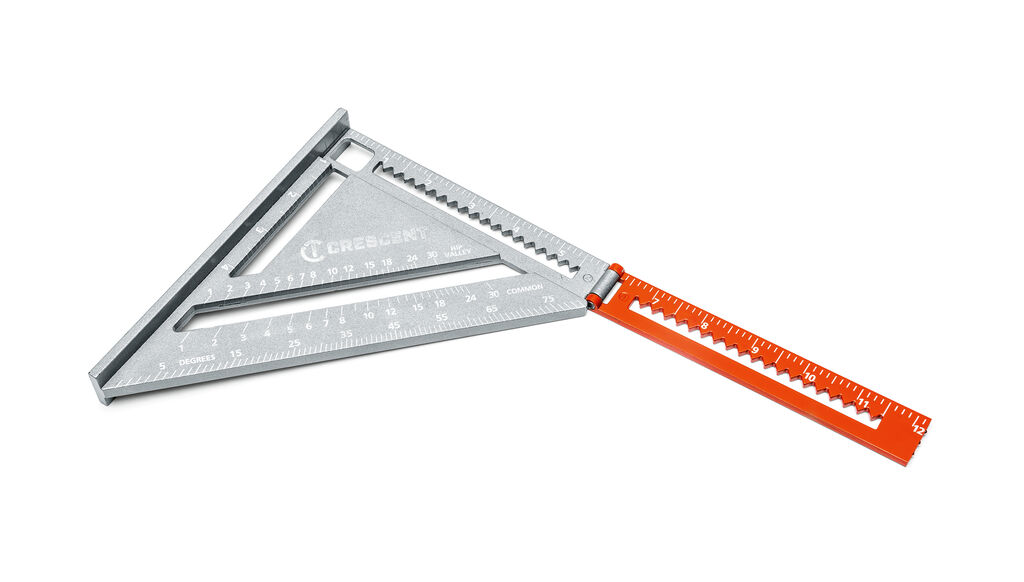 The Crescent EX6 extendable layout square offers two functions which simplify wood processing and framing in one original tool. The extension arm makes carrying a second square superfluous since there is now a continuous edge for the marking of large-size timber. Laser-etched measurement markings increase readability and durability. Folded and closed with the locking mechanism, the tool is convenient to stow, transport and store.