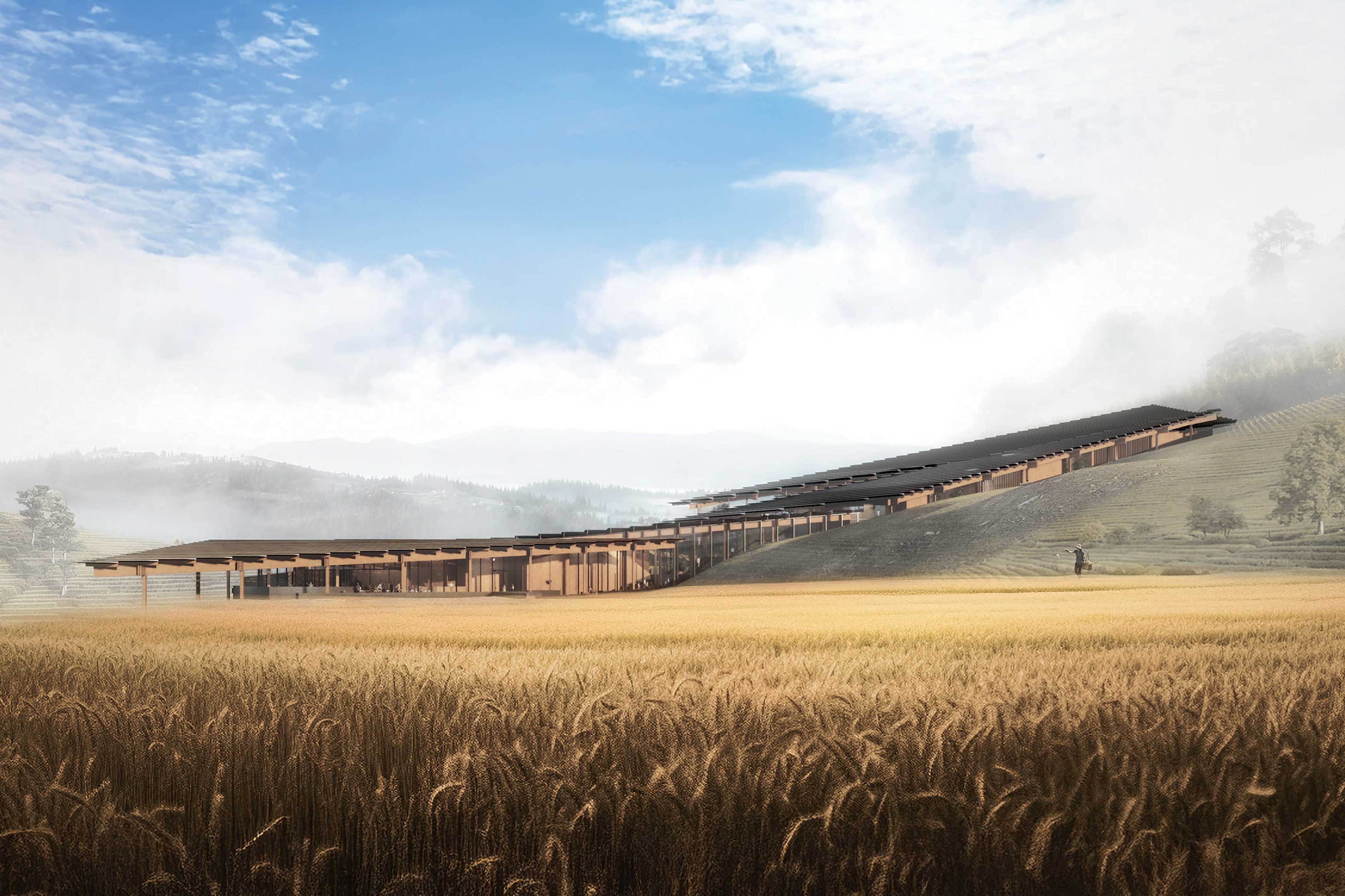 Crevice is designed to harmonise with its surrounding terraced landscapes and bridge Shandong's traditions with contemporary architecture. Triangular forms evoke a metaphorical imagery of 'mountains beyond mountains', symbolising strength and serenity. A stream weaves through the museum, connecting exhibitions, performances, and communal spaces, guiding movements and dynamic interactions, and reflecting the local essence of time-suspended inner peace — the Crevice.