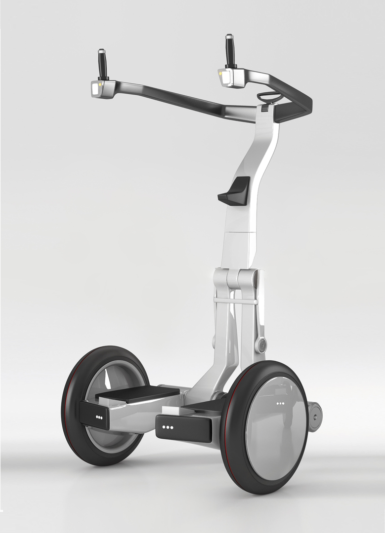 CrickIT is an electrical vehicle and an alternative mode of long-distance transportation. It is designed to operate in cities where means of transportation are not as convenient. It works well everywhere, but it is particularly suited for bypassing obstacles and accessing small roads and pedestrianised areas in historical centres. This is also the first portable scooter that allows the user to lean back in a semi-sitting position with the ischial tuberosity (sitting bone) supported. The handle and the seat are both ergonomically designed and adjustable to allow people of different heights and sizes to drive in the most comfortable position possible. CrickIT can go from vehicular to trolley mode. In the vehicular configuration, the user leans against the seat and drives by holding on the handlebars, leaning left and right to steer, much like a skier does. In this mode, CrickIT can achieve a maximum speed of 15km/h, but the driving speed usually averages from 8km/h to 10km/h. When transformed into the “trolley” mode, the user places the object on the platform and stands outside of the vehicle to drive. Its potential speed is greatly reduced to 7km/h in order to transport up to a maximum of 250kg. The entire vehicle can be folded up compactly into the size of a suitcase and stored in the trunk of a car. When packed flat, CrickIT has a height of 37cm and when open, it stands at 110cm. The shell is made of polycarbonate and carbon materials to provide strength and lightness. On average, it runs on modern gel battery that can last about 2 hours per charge. Other functions include positional and RGB signal lights; two small displays located on the foot platforms that signal the battery charge and vehicle status in case of a malfunction; and a localisation software that guards against theft or tracks the location of goods for logistical services. CrickIT is the perfect example of portable comfort and technology compacted all into one.