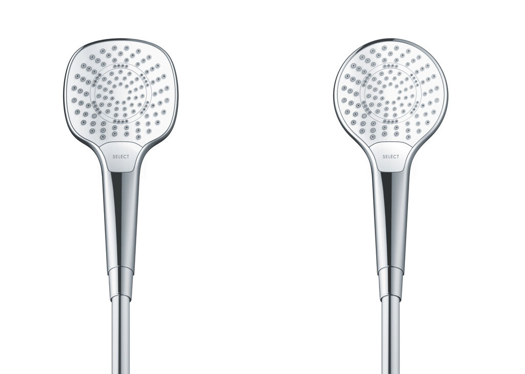 Croma Select hand showers are available in E and S versions, each with different spray modes. The Croma Select Multi hand shower offers individual showering experiences with three different spray modes: from SoftRain via IntenseRain to the massage spray. In the Croma Select Vario shower the spray intensity can be selected from three different settings, from the soft Rain Spray to the strong Turbo Rain. All showers are available in modern white-chrome with a white spray disk and handle. They are available with EcoSmart technology for reduced water consumption.