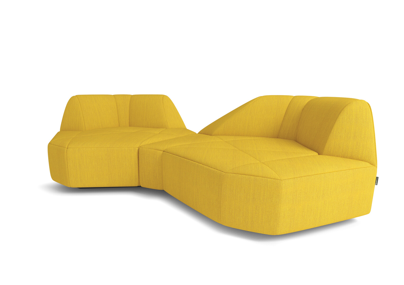 The modular Crystal Grand Sofa can be combined in many different, versatile ways by putting two, three or even more sofas together. They can be arranged back to back, side by side, in a circle or cross-wise. The sofa’s imposing dimensions make it particularly suitable for large rooms such as you find in hotels. Its design vocabulary is inspired by the geometric lines of natural crystals. The sofa frame is made of beech wood, composite and particle board panels, the seats and backrest are made of polyurethane and viscoelastic foam.