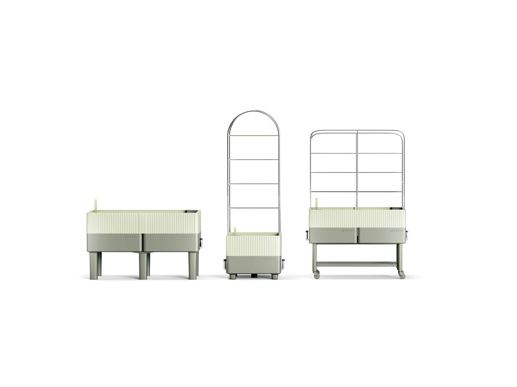The modular, customisable Cube Planter Pot can be used in combination with a wide range of accessories such as trellises, greenhouse covers and castors. Thanks to its concealed self-watering system, the planter pot is extremely functional. A control element allows for individual regulation, while a buoy indicates the water level. Rounded edges and a light/dark colour contrast give the design a harmonious and striking appearance. Made from recycled marine plastic, the planter pot also fulfils sustainability requirements.