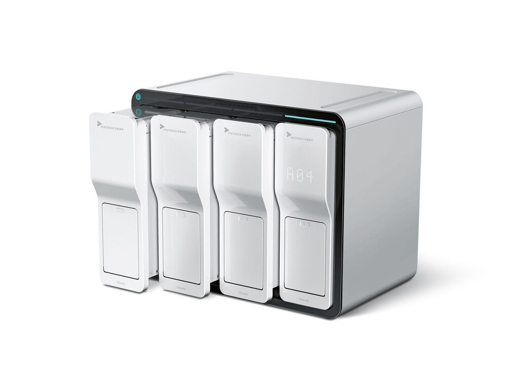 CubixDX enables the fully automatic construction of sequencing libraries for next-generation sequencing. With the system taking over all manual steps from the DNA fragmentation to the purification of samples, it helps to prevent human errors and to significantly reduce preparation time. The chambers are integrated flush into the form, giving rise to a self-contained overall appearance. An integrated lighting strip indicates the operating status.