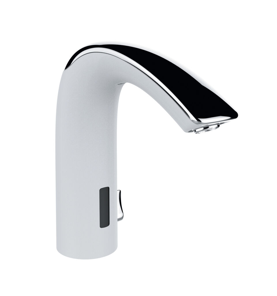 Curvetronic is an infrared mixer for both the public and private sector. The white body of the mixer matches the white colour of ceramic washbasins. Due to its easy-to-clean shape and the hands-free operation, Curvetronic meets the highest hygiene standards. The built-in electronics offer numerous functions, tailored to individual needs. Compared to mixers with operating levers, Curvetronic saves up to 70 per cent of water.