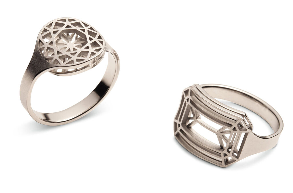 The rings of the “cut” jewellery series fascinate beholders at first glance. Using the possibilities offered by laser micromachining in a creative manner, they emerged as gems with a distinctive visual appeal. They look like self-enclosed three-dimensional units, yet the individual layers they are made of are still perceivable. They touch the senses with their inspired design and exude a sense of high value.