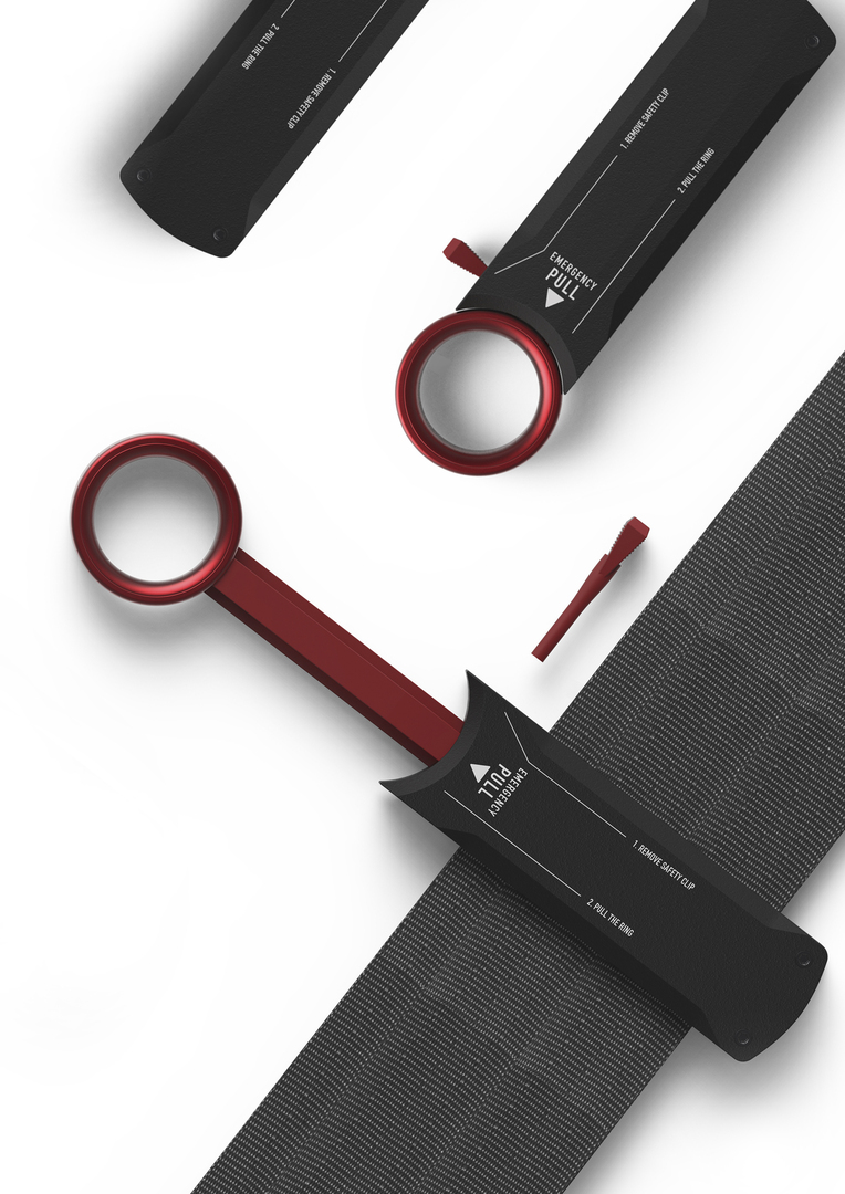 In a car accident, the seatbelt release mechanism can sometimes jam up, leaving passengers helplessly stuck in their seats, unable to escape the car. In this situation, a seatbelt cutter could be the tool that saves lives. Because of the impact of accidents, the electronic plate in seatbelt buckles or seatbelt retractors can sometimes break. Cut-Save Life is a seatbelt cutter that is attached to the seatbelt, making it convenient for passengers to escape when they are trapped and in danger. The trapped passenger only has to pull the safety pin and the main ring to activate the belt cutter.