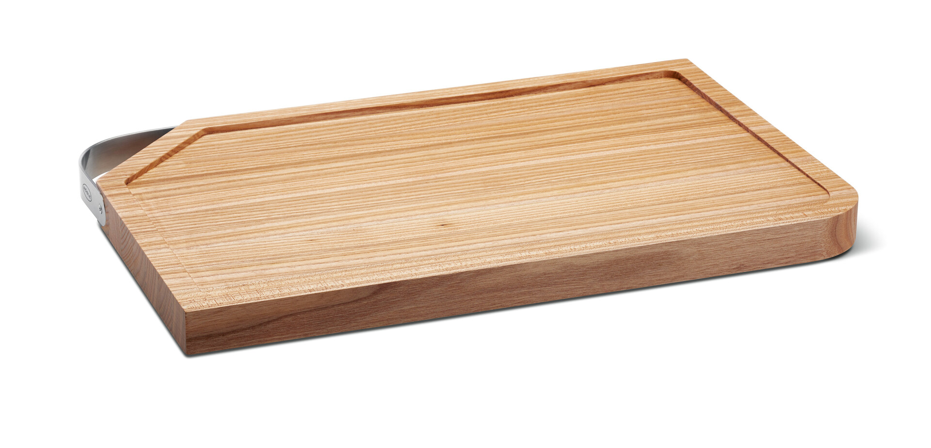 These high-quality elm wood cutting boards are available in three different sizes and all of them feature handles made of stainless steel. The various boards offer individual benefits such as the round recess in the small cutting board for holding salt. The medium and large board models offer a sloping work area, which allows liquids to drain off. The stepless front edges of the boards make it easy to swipe chopped foodstuff into a pot or pan.