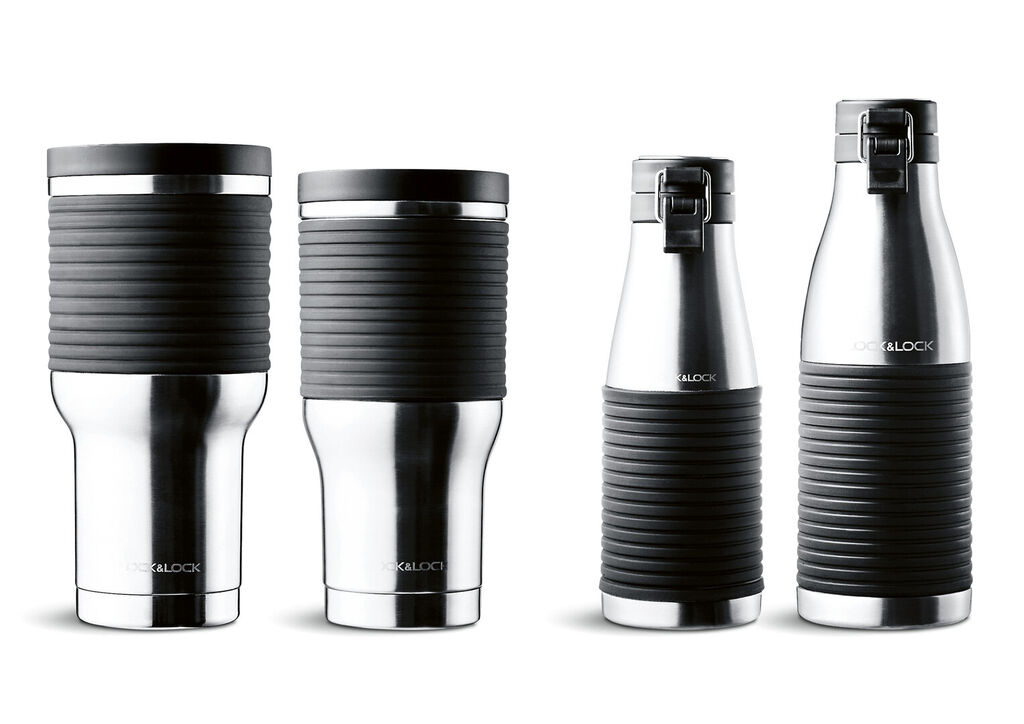 Black silicone pads and a stainless steel design, the designers of these vacuum tumblers were inspired by car cylinders. The tumbler’s masculine appearance has adopted harmonious lines which make the product appeal to both men and women. The series consists of two models: while the tumbler features a wide lid, which opens with only one hand and ensures a secure grip when driving, the bottle-shaped model has a hook lid to prevent the spilling of drinks while on the move.