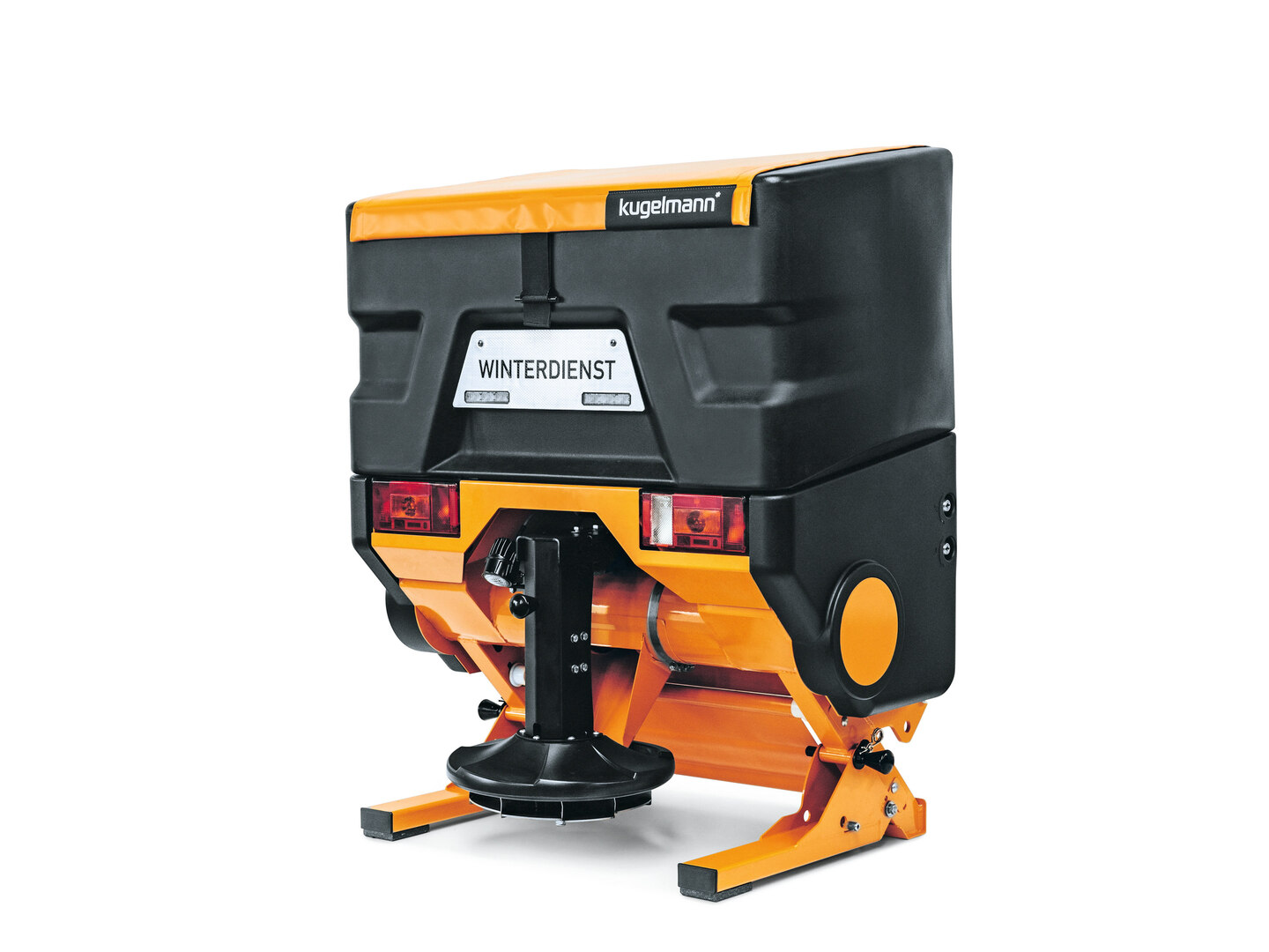 The D301 and D601 three-point spreaders convince with an innovative use of materials. Instead of simple steel or stainless steel, the whole tank is manufactured by rotational moulding technology, using high-quality plastic. Only the base element is made of stainless steel. The spreaders are thus long-lasting and more cost-effective to manufacture. Furthermore, the use of plastic reduces weight, which saves fuel and allows heavier loading. Fully integrated rear lights, conveniently foldable pedestals and a cover sheet provide safety and functionality.