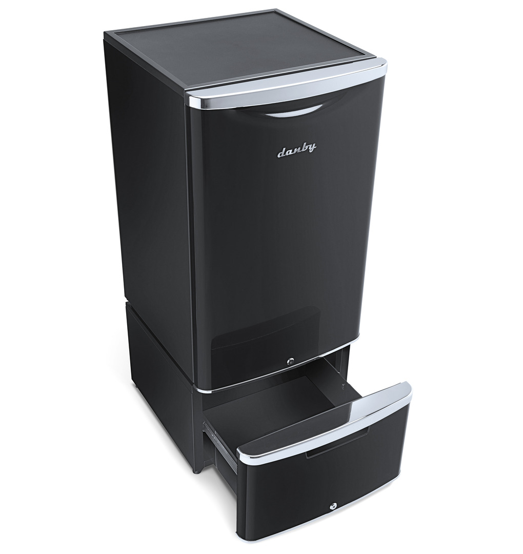 This combination of refrigerator and storage space convinces from a functional as well as an aesthetic viewpoint and is tailored to the growing number of young single households.