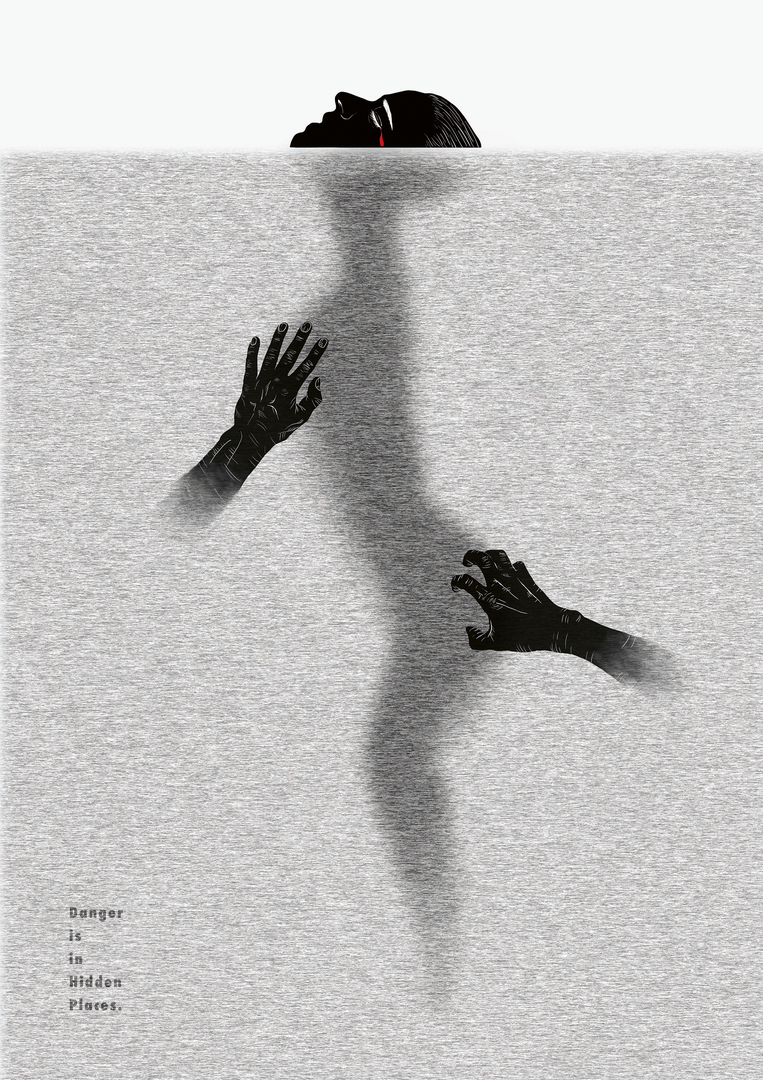 This poster series aims to draw attention to sexual assault and harassment. The posters visualise the delicate issue by employing reduced means. While a realistic representation makes up only a small part of each image, most of the space is occupied by a blurred zone, symbolising the fact that the victims are usually molested in secret. By not showing the injured body parts openly, the posters also refer to the victims’ trauma. Viewers are encouraged to decode the meaning of missing details and to become aware of inner harm, which has a serious impact even though it is invisible.