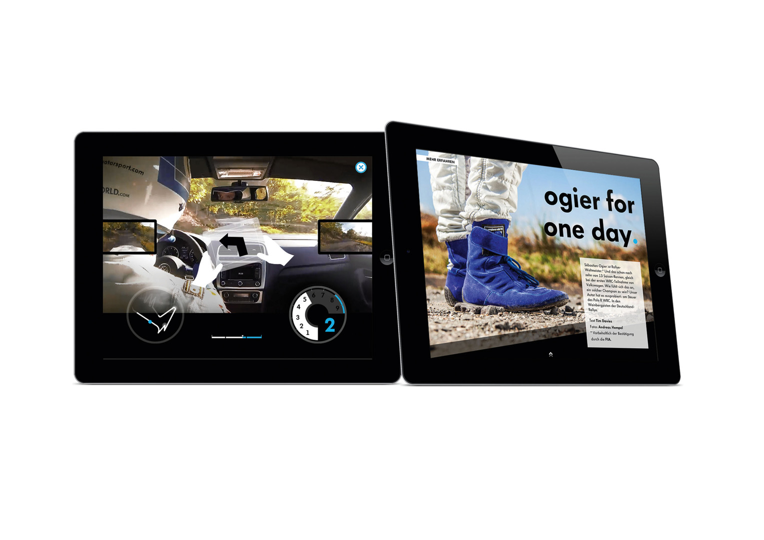 The app for the brand publication “Das Auto. Magazine” by Volkswagen AG – particularly its content-related features programmed for iPad – complements the print edition with a responsive web design. Facilitated by a versatile layout that is characterised by vibrant photo spreads, each brand area has the possibility of placing individual content and compiling the magazine in a clearly outlined form, specifically developed to reflect regional differences. The area editors can thus choose the extent to which they want to adapt the magazine to their needs.