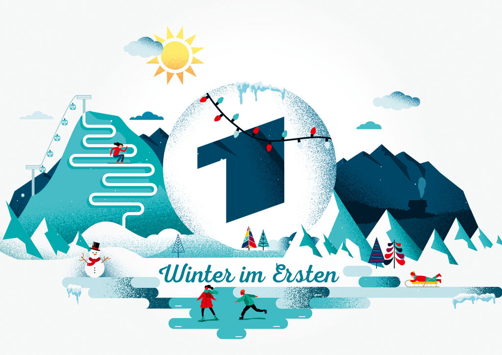 The aim of these idents, developed for ARD, was to promote the brand and enhance the memory value of the logo Das Erste. The logo is placed at the centre of each illustration and animation, which show typical scenes for the four seasons: a winter wonderland in ice-blue and white, a summery water-based landscape, or colourful flowers heralding spring surround and frame the logo, making it a fixed component of the respective season. Each ident has its own style and individual aesthetic, thus standing out from the daily programming of the channel.