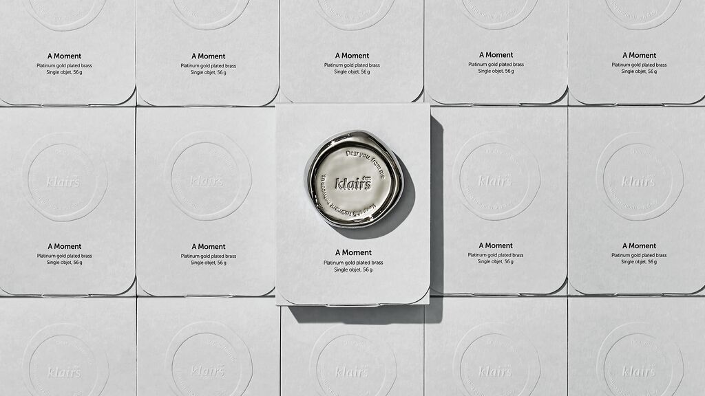 “A Moment” is a small hand mirror designed to create a broader brand experience. As a limited-edition gift item, it aims to illustrate the high quality of the Dear, Klairs skincare brand. The decorative object is coated with platinum and handmade, reflecting the company’s desire to promote social cooperation in local areas. Inspired by the keyword “dear” in the brand name, the back of the mirror features embossing that looks like a wax letter seal. The inscription “Dear you, from me. Keep this moment between us.” gives the brand promotion an emotional aspect.