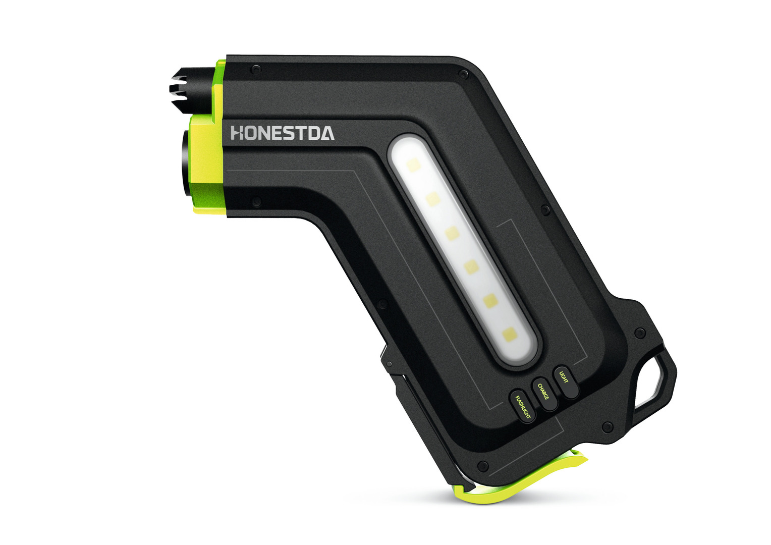 This multi-functional outdoor tool is equipped with a strong flashlight, a mobile power supply, an emergency window breaking hammer and flashing warning lights. With 6,700 mAh, it charges most electronic devices through a 5V/2.4A USB port and can be used as a flashlight as well as a flashing warning light with an operating time of more than eight hours. Thanks to its robust construction, the lightweight multi-tool is waterproof and suitable for use in various environments.