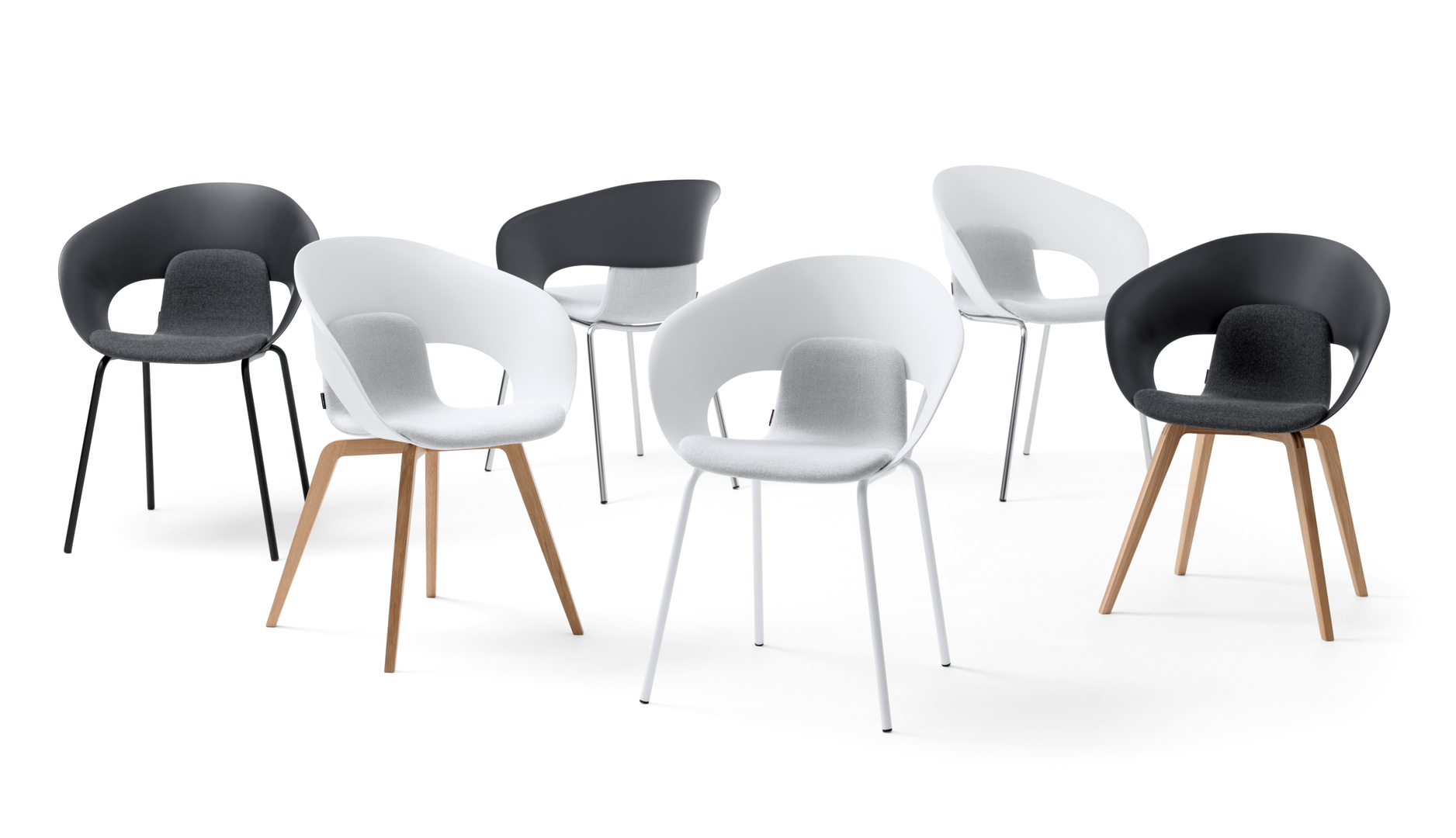 The Deli chair fascinates with its organic language of form. Its minimalist design perfectly blends the two elements of seat shell and upholstery. It is highly comfortable and invites users to relax. Thanks to the use of high-quality materials, the chair is not only durable but can also be easily stacked. The Deli adapts to almost any interior – from offices to trendy cafés.