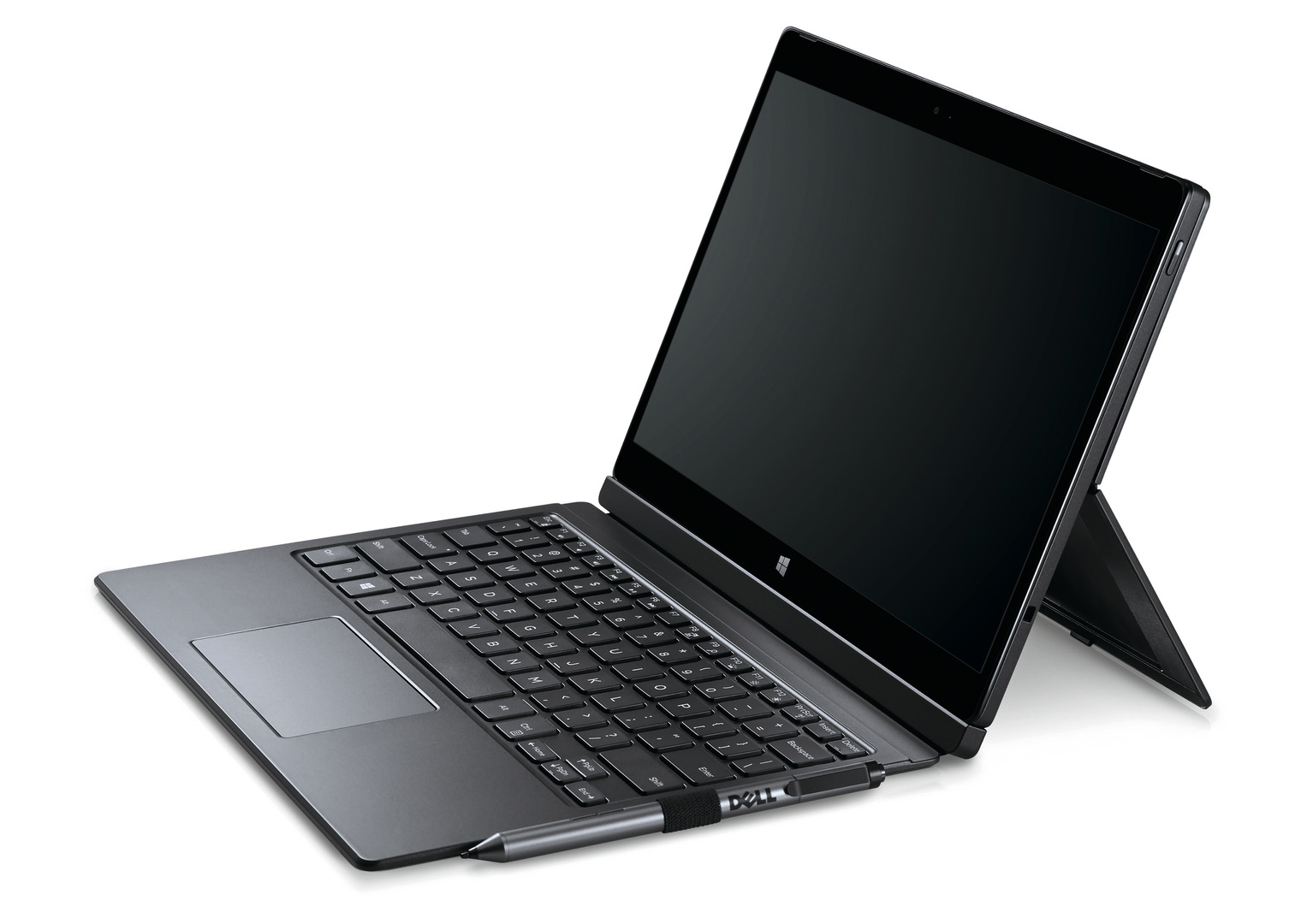 The Dell Latitude 12 of the 7000 series is a very thin and lightweight two-in-one system in the business class. The four edges of the aluminium alloy casing are designed to include impact zones in order to ensure optimum drop protection. The textile-coated, magnetic cover with keyboard turns the tablet into a notebook in an instant. This cover provides scratch protection and complements the system with an adjustable stand.