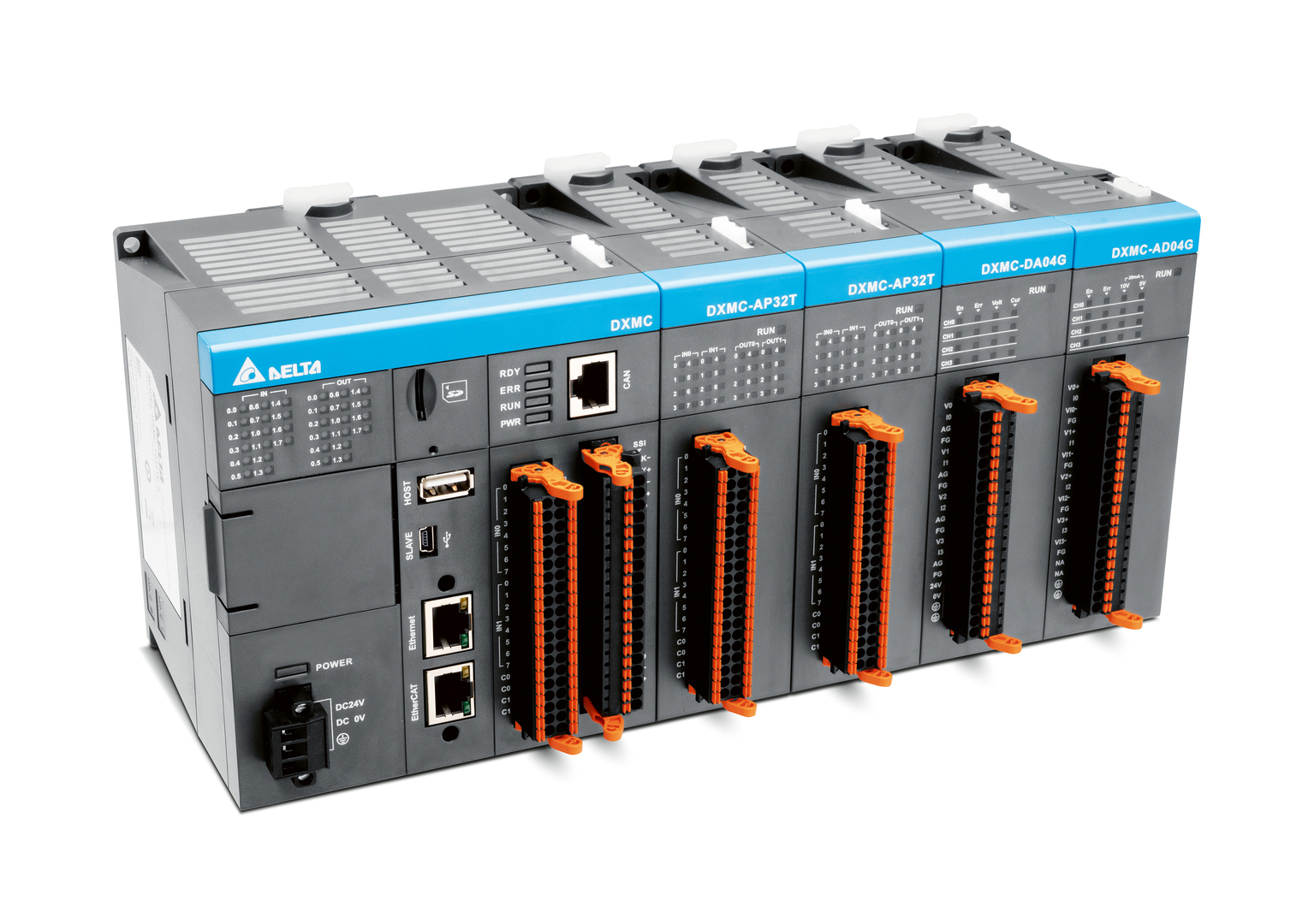 The Delta DXMC Series are advanced multi-axis motion controllers featuring modular design for high scalability. With E-CAM, rotary cut, flying shear and many other function modules, the DXMC Series offer sophisticated motion control capabilities for various applications. The external case is made of recyclable PBT material, and its dark grey colour emphasises its resistance to dust and oil when applied to harsh industrial environments.