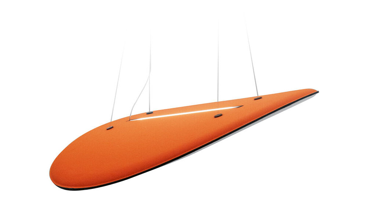 Demì places a plastic polymer lampshade centre stage. Looking completely transparent when the light is turned off, the shape of the luminaire only comes to live when it is illuminated. This effect is enhanced by laser micro-incisions, diverting the light beams on two sides. This allows a diffuse, glare-free and screen-compatible lighting which complies with UGR regulations. The LED light source is placed in the centrally positioned white-painted aluminium ring.