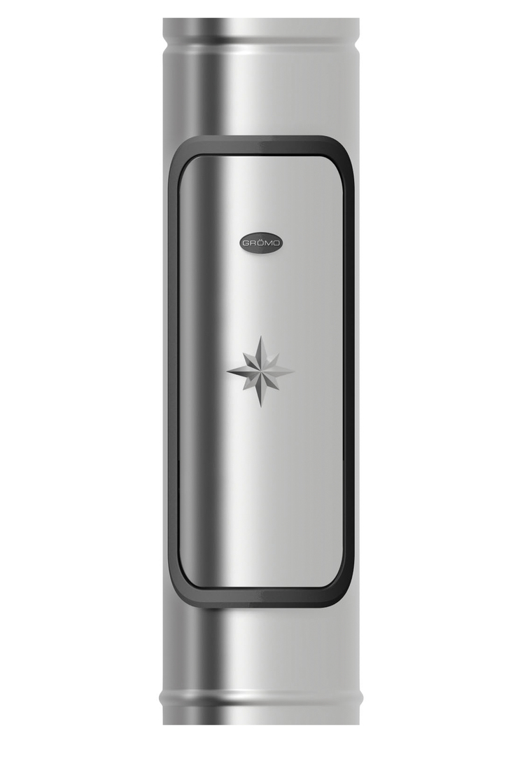 This innovative rainwater flap is eye-catching in that it operates not with a handle to open the flap mechanism but with a click lock, which opens when pushed once and closes upon another push. Inside is a filter that can be easily removed for cleaning. An elegant black plastic frame and the company logo round off the product’s appealing appearance.