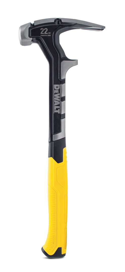 The handle grip of the demolition hammer by DeWalt is made of three different materials. The first layer absorbs vibration, the second layer creates a durable structure and the third layer provides grip and comfort. The hammer head is cast in one piece and has a design that optimally shifts the weight onto the striking surface, which ensures minimal bounce. The patented section between the claw at the hammer head and the lower claw is sharpened and able to rip out drywall.