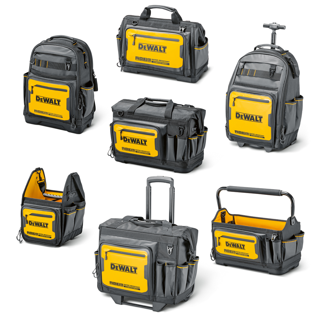 The DEWALT soft-sided storage range consists of seven high-quality tool bags and backpacks, made from durable, dirt-repellent materials that can withstand tough weather and construction site conditions. The different models offer a variety of options for organising tools and are suitable for a wide spectrum of activities. Special attention has been paid to comfort and ergonomics in the various handle, carrying, and shoulder strap designs.