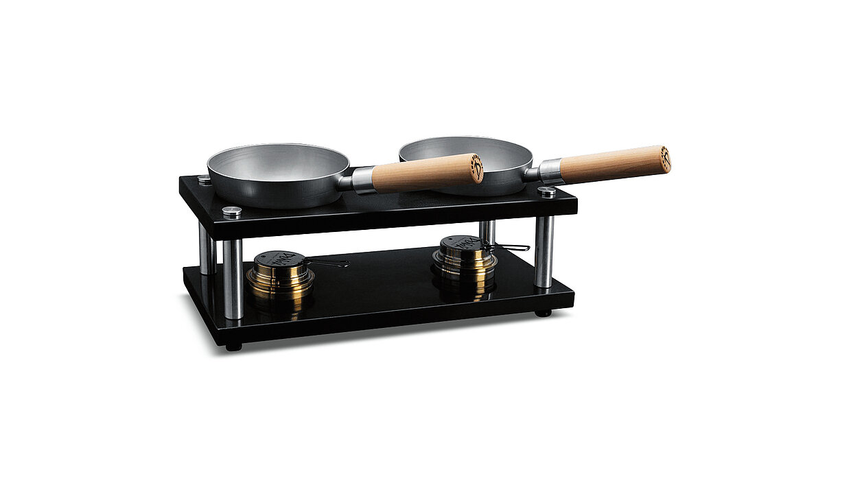 The DeWok Double Set Black Edition is a mobile cooking system that does not depend on electricity and is suitable for use at the dining table, for barbecues, or camping. The set consists of two woks and a high-quality base made of natural stone and aluminium. The stainless steel pans with solid wooden handles underline the high-quality appearance. The cooking heat is generated by two safety burners. Accessories such as two bamboo spoons, burner cutlery, and a wooden box with leather handles round off the product package.